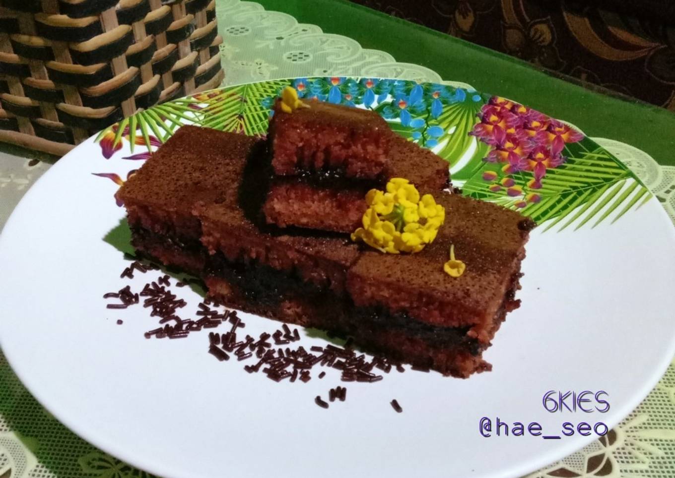 - Setelah 30 menit, sambil memanaskan teflon, tambahkan soda kue pada margarin yang sudah dilelehkan, lalu campuran margarin & soda kue ditambahkan pada adonan, kemudian tambahkan pewarna makanan coklat, aduk hingga merata (skip kalau tidak mau pakai pewarna makanan)