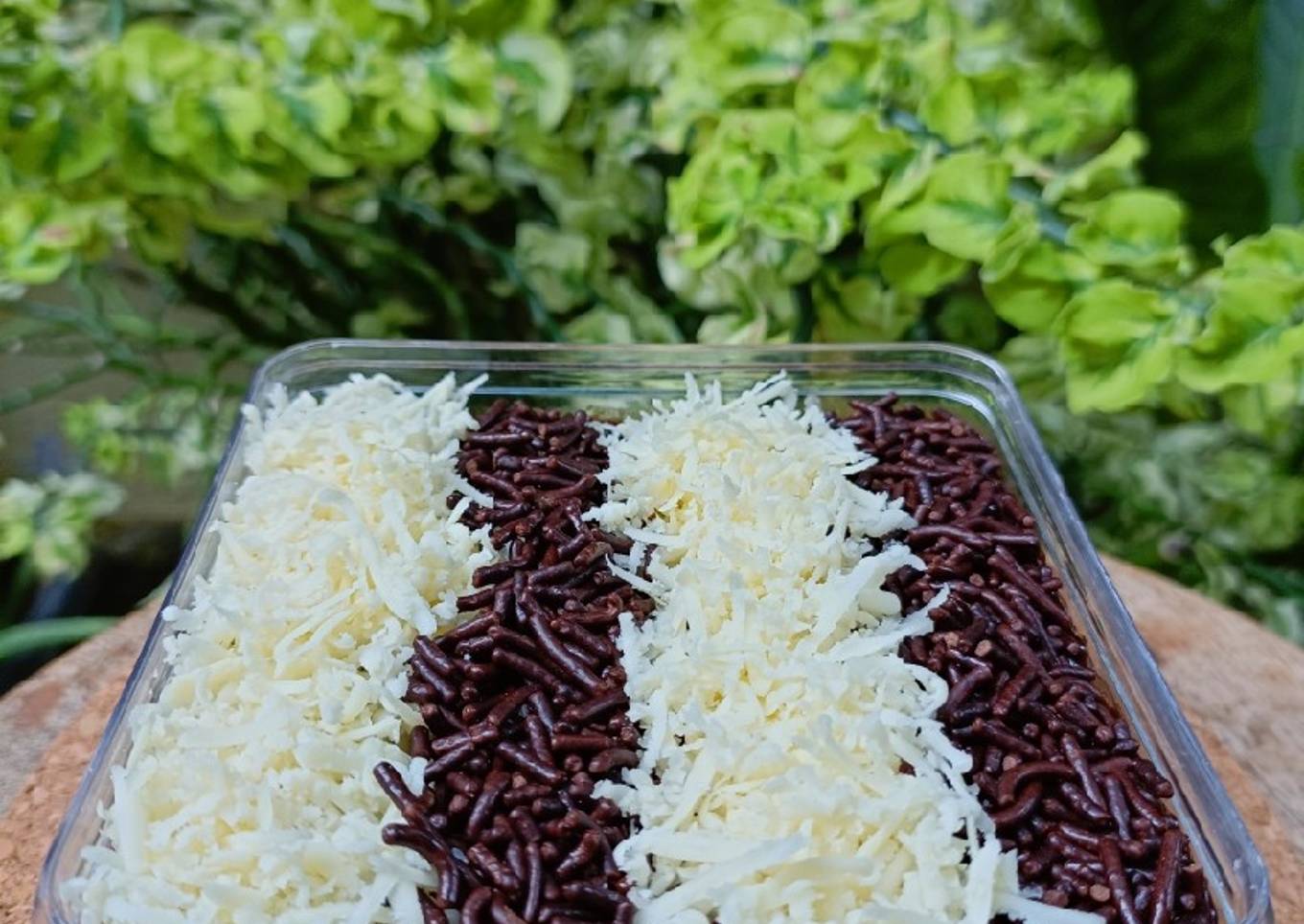 - Jika sudah matikan api, ambil wadah, taruh 1 lembar roti kedalamnya lalu tuang vla coklat, lakukan sampai habis, dan beri topping keju dan mesis diatasnya. (saya gunakan 3 lembar roti tawar dalam 1 box, sisa vla nya saya tambahkan lagi kedalam box lain + roti tawar lagi). Selamat menikmati~