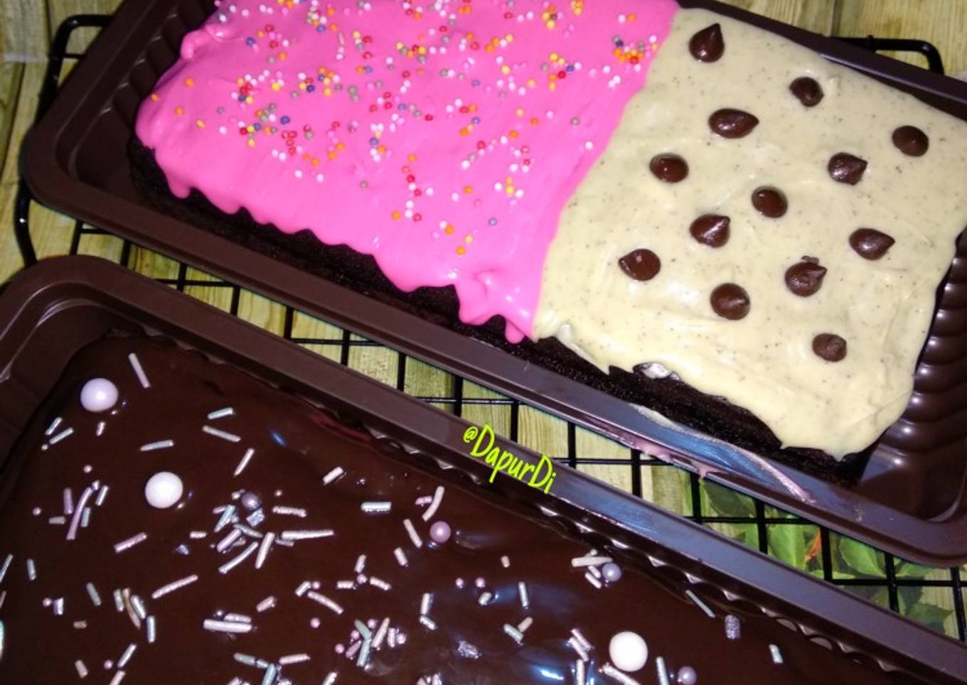 - Aku kelupaan foto step ketika cake keluar dari kukusan...😅, Bagi 2 cake sama rata,hias dengan glaze/topping sesuai selera