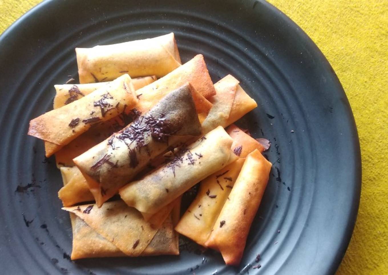 Banyak hal yang sedikit banyak mempengaruhi kualitas rasa dari Kulit lumpia isi coklat, mulai dari jenis bahan, lalu pemilihan bahan segar, hingga cara mengolah dan menghidangkannya. Tak perlu pusing kalau ingin menyiapkan Kulit lumpia isi coklat enak di mana pun anda berada, karena asal sudah tahu triknya maka hidangan ini bisa menjadi suguhan istimewa. Seterusnya adalah gambar berkaitan dengan Kulit lumpia isi coklat yang bisa Anda jadikan contoh.
