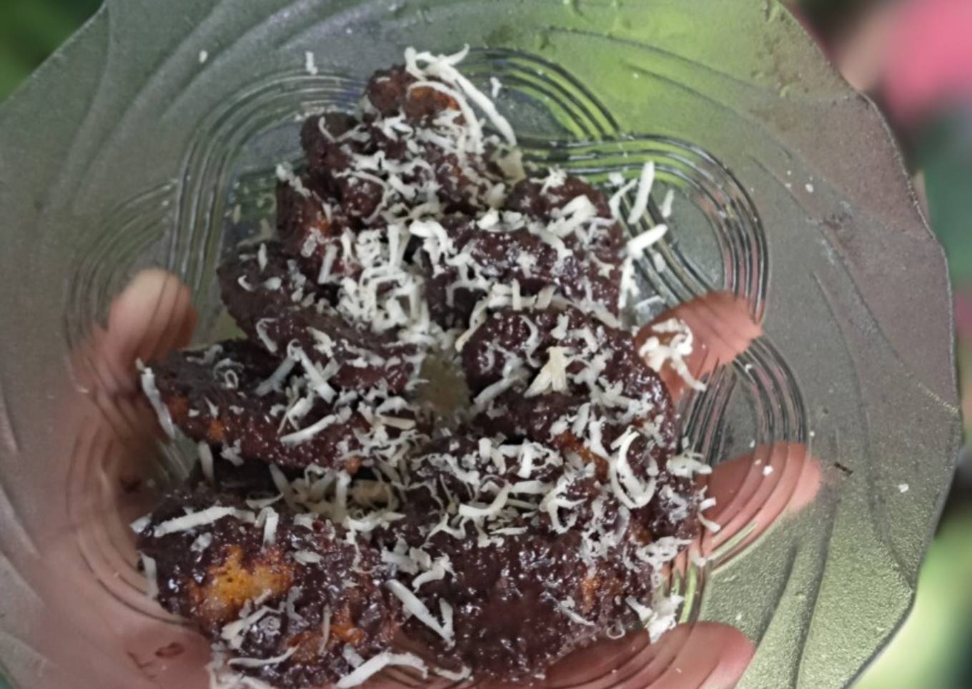 - Baluri gorengan tadi kedalam chocolate gazle dan kemudian taburi dengan keju. Siap disajikan.