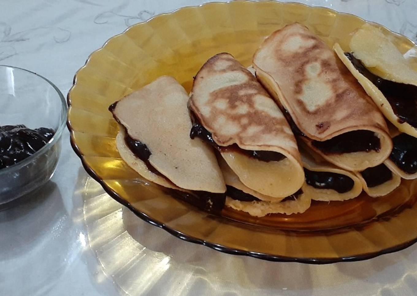 Ada beberapa hal yang sedikit banyak mempengaruhi kualitas rasa dari Dorayaki lipat saus coklat, pertama dari jenis bahan, selanjutnya pemilihan bahan segar, hingga cara membuat dan menghidangkannya. Tidak usah pusing kalau ingin menyiapkan Dorayaki lipat saus coklat yang enak di mana pun anda berada, karena asal sudah tahu triknya maka hidangan ini dapat menjadi suguhan spesial. Selanjutnya merupakan gambar berkaitan dengan Dorayaki lipat saus coklat yang bisa Anda jadikan contoh.
