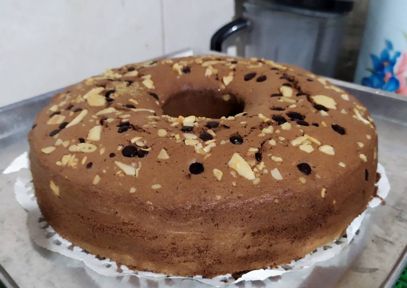 - Tuang adonan, kemudian ratakan dengan tusuk sate. Kasih toping almond slide dan Chocochip.