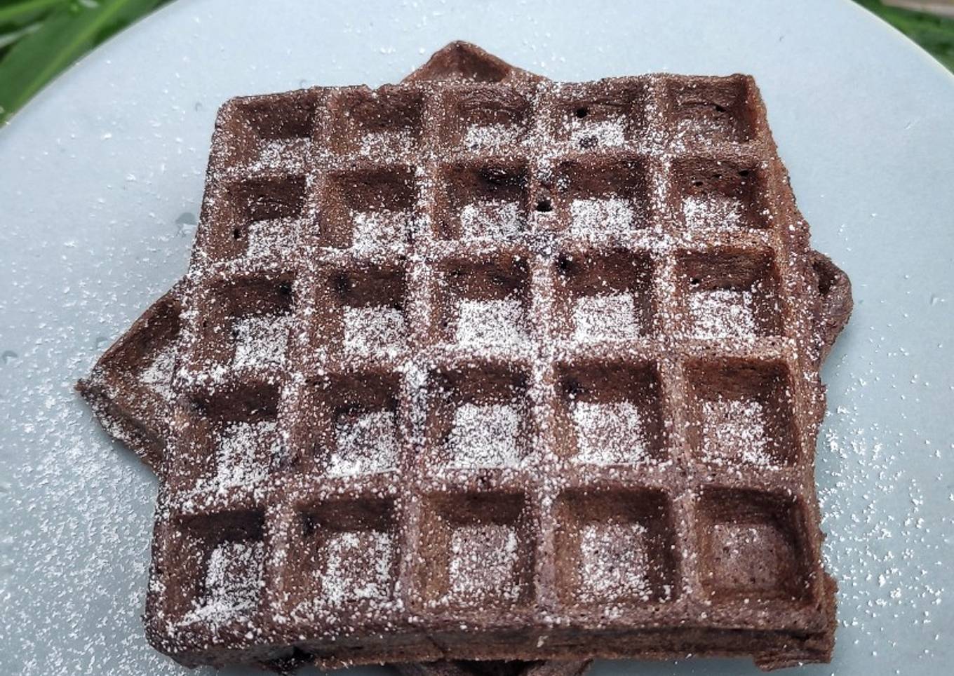 - Untuk waffle coklat, disajikan dengan taburan gula halus udah yummy, krn ada chocochip di dalamnya, jadi rasanya sudah enak.