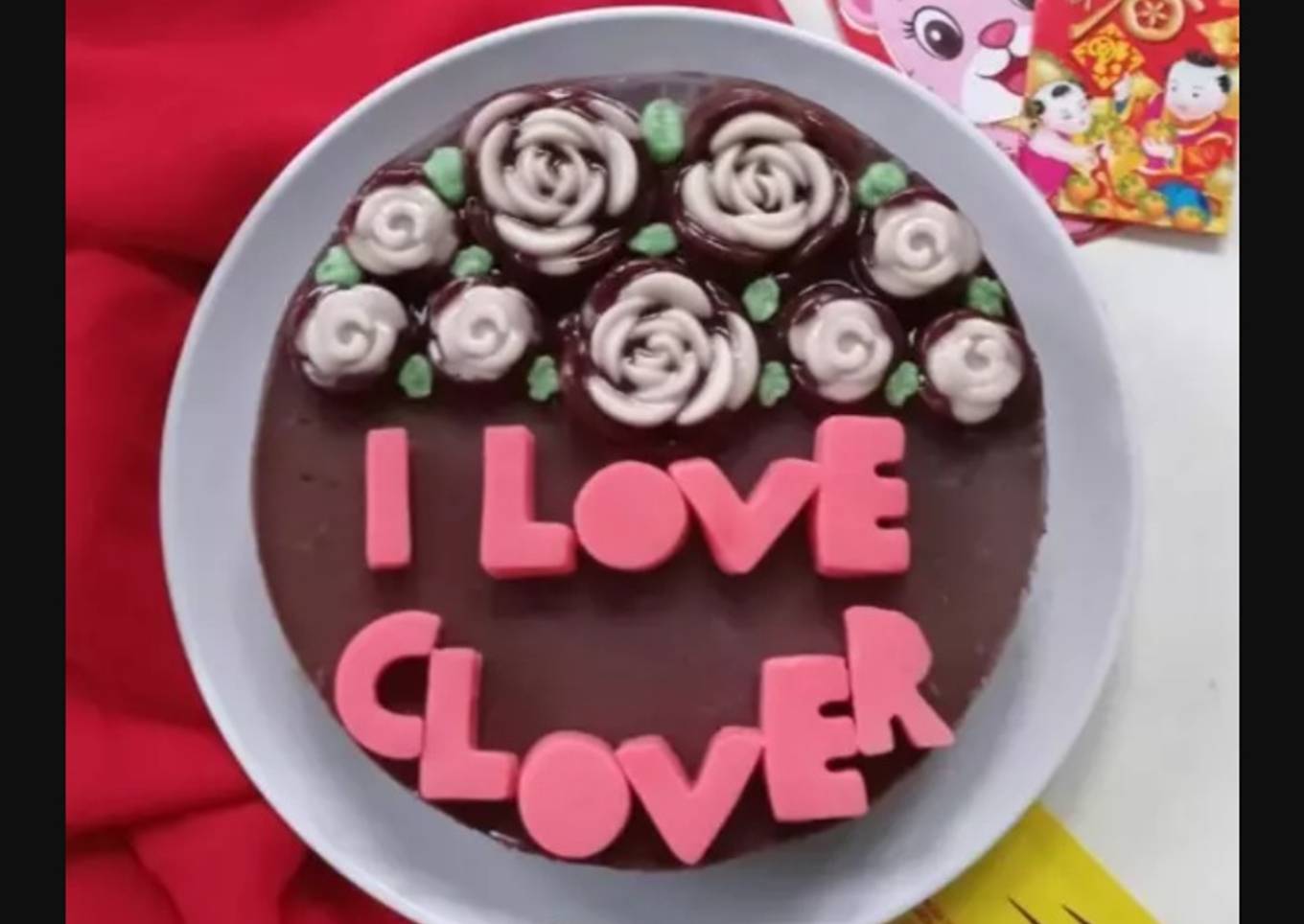 - Campur agar-agar air matang dan garam masak sampai mendidih angkat ambil 300 ml adonan agar beri kental manis putih aduk rata tuang ½ sdt ke dasar cetakan mawar besar dan kecil sisanya beri pewarna merah tuang ke dalam wadah datar (ini utk huruf) ambil 200 ml tambahkan chocolatoz coklat aduk sampai larut tuang ke dalam cetakan mawar hingga penuh biarkan set