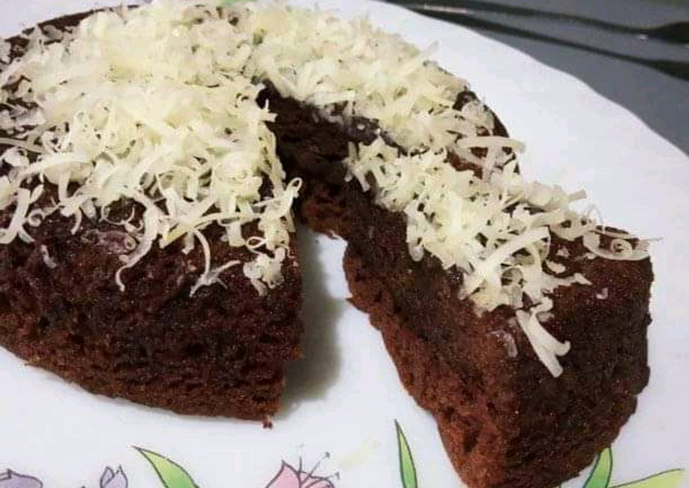 - Setelah matang, angkat,tunggu dingin, olesi bolu dengan margarin, lalu taburkan keju parut sesuai selera.