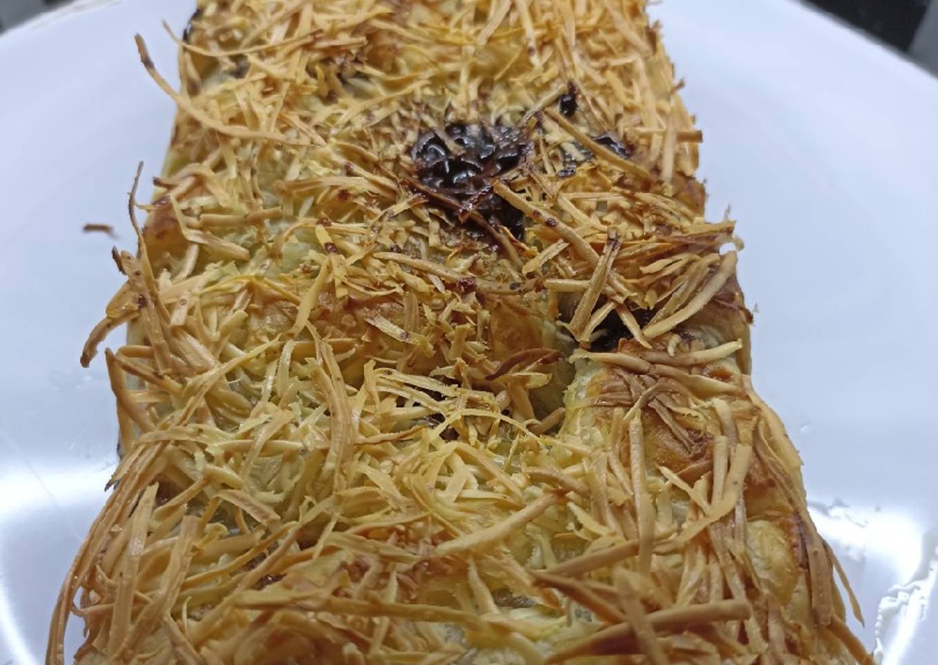 - Lalu atasnya olesi kuning telur dan taburan keju parut