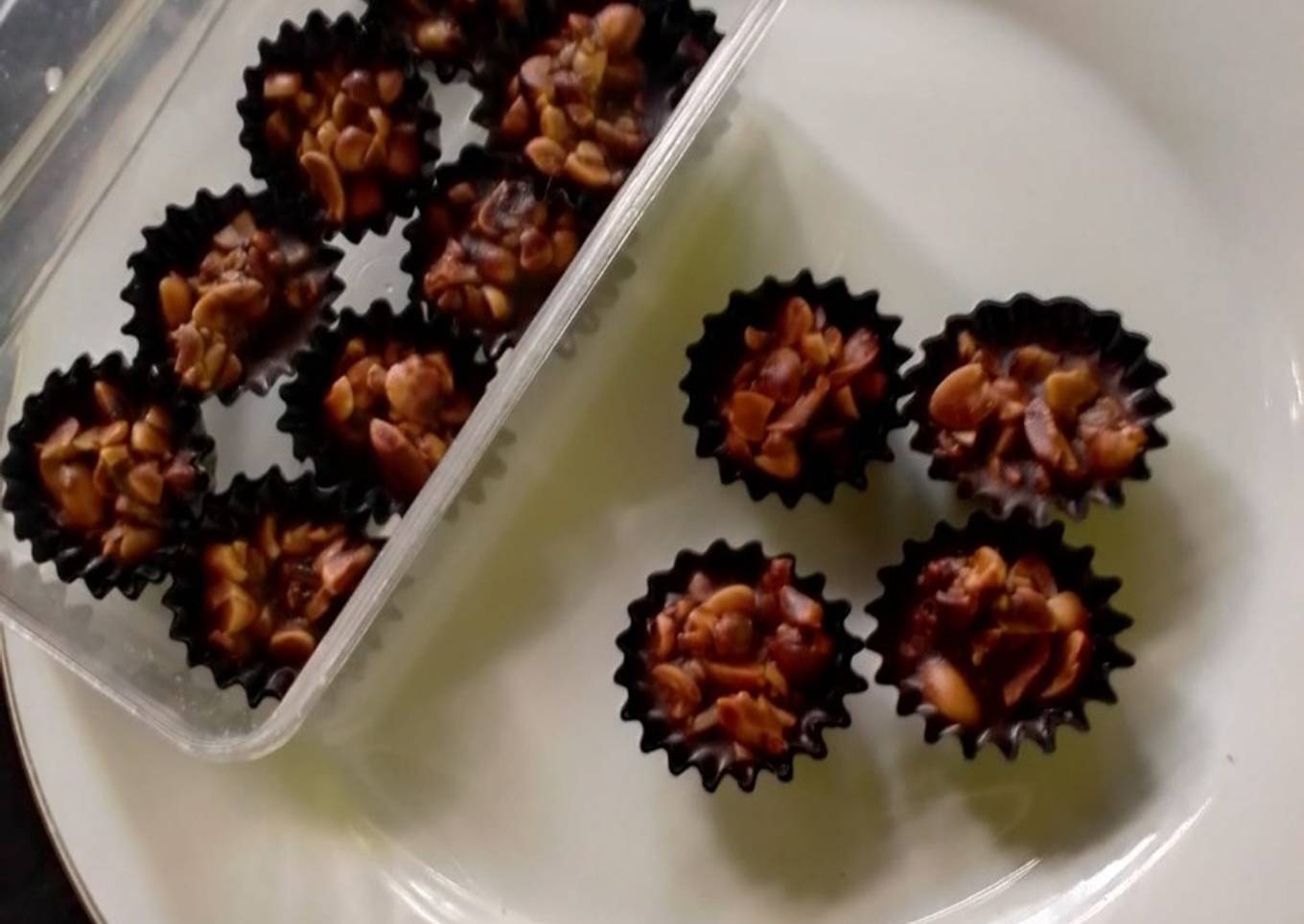 - Selanjutnya tata paper cup, disini saya pakai ukuran mini maaf gatau ukuran berapa soalnya sisa buat kuker tahun kemarin hihihi. Selanjutnya tuang kacang yang telah dicincang kedalam lelehan dcc. Tuang adonan kedalam paper cup hingga habis. Selanjutnya masukkan kedalam kulkas kurleb 25 menit