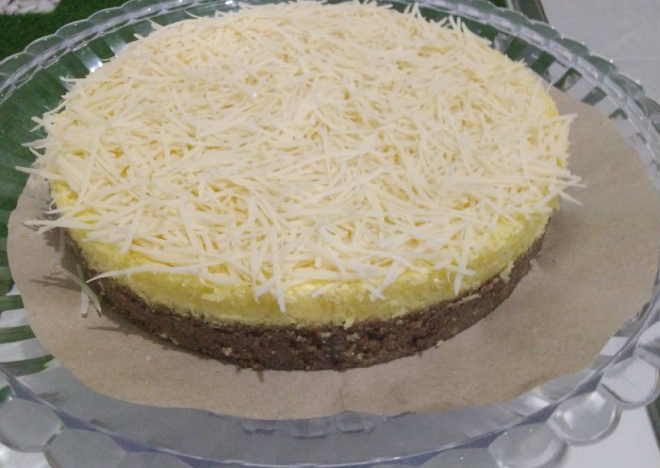 - Setelah 15 menit, tuang adonan keju, ratakan dan kukus selama 45 menit, dengan api sedang