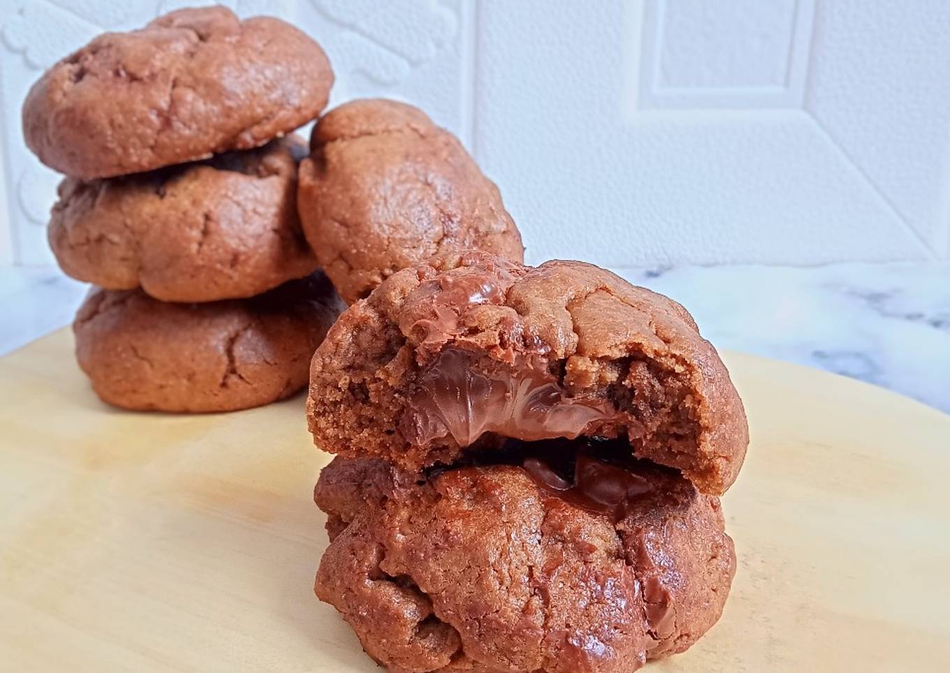 Kali ini aku bikin cookies yang sempat viral beberapa waktu lalu,rasanya enak banget lumer bagian isinya dan aroma cokelat Butter ya bikin nagih,satu?? Mana cukup..