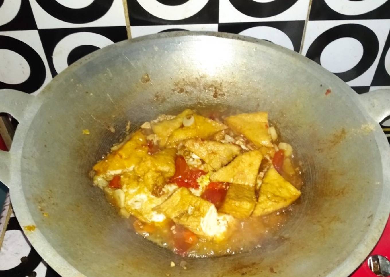 - Masukkan tahu dan telor, tambahkan gula, garam, royco, dan saori