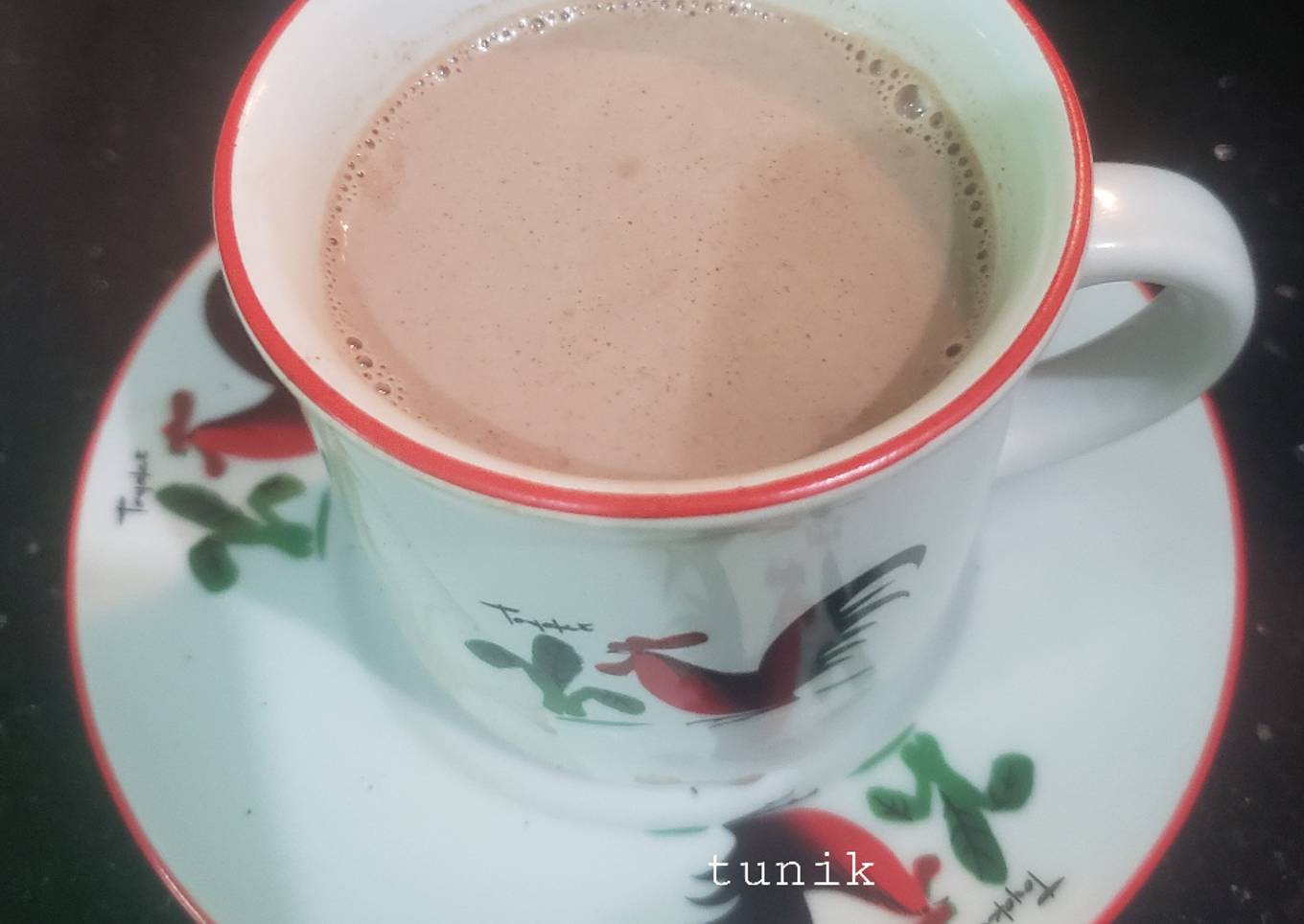 - Hangatkan susu tambahkan coklat bubuk aduk hingga coklat larut tambahkan juga gula aduk kembali, beri sejumput garam dan vanillanya